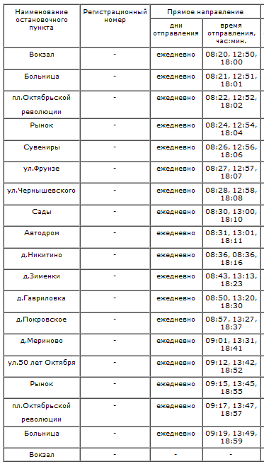| Интервал движения: по расписанию | Стоимость проезда: от 35 руб. |