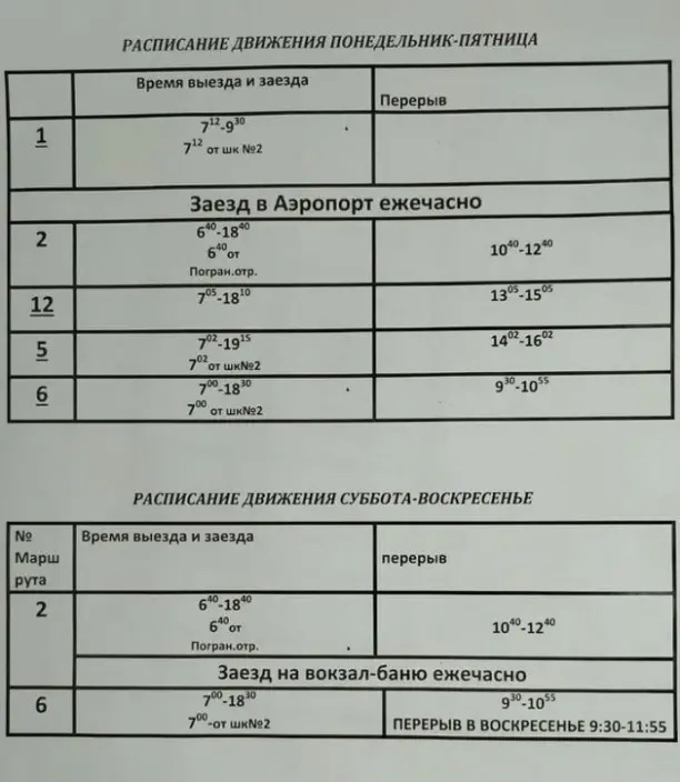 Шимановск → Орджоникидзе → Пограничная → Лесотехническая → Шимановск → Пограничная → Орджоникидзе → Амурская → Вокзальная → Первомайская → Пушкина