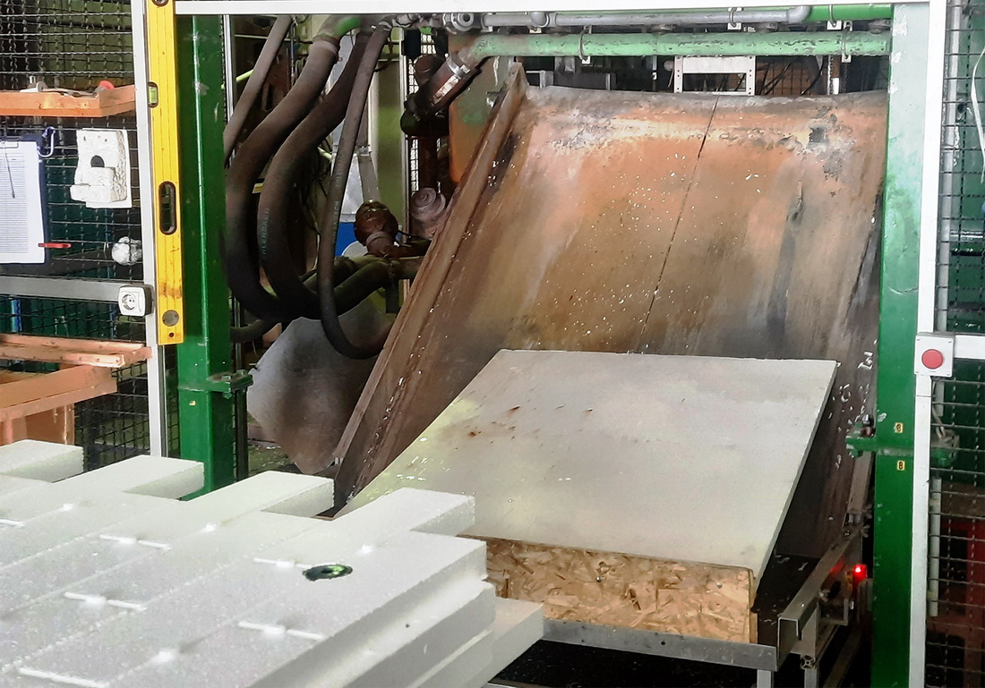 Плиты экструзионного пенополистирола или пенополиуретана поступают в цех, где на программируемом станке раскраиваются на заготовки требуемого формата. На этом же этапе по торцам панелей формируется замковое соединение, которое в дальнейшем обеспечит плотную стыковку изделий на фасаде без «мостиков холода».