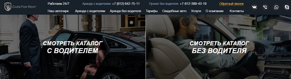 Являясь крупнейшей в Санкт-Петербурге компанией, предоставляющей транспортные услуги, компания «CarsForRent» дорожит своим профессиональным сервисом и формирует в городе европейскую культуру транспортных услуг. Своим клиентам мы предоставляем в пользование широкий выбор автомобилей, которые соответствуют их статусу и требованиям. Приоритетами деятельности являются абсолютная прозрачность расчетов, техническая исправность каждого транспортного средства и индивидуальный подход к каждому клиенту.