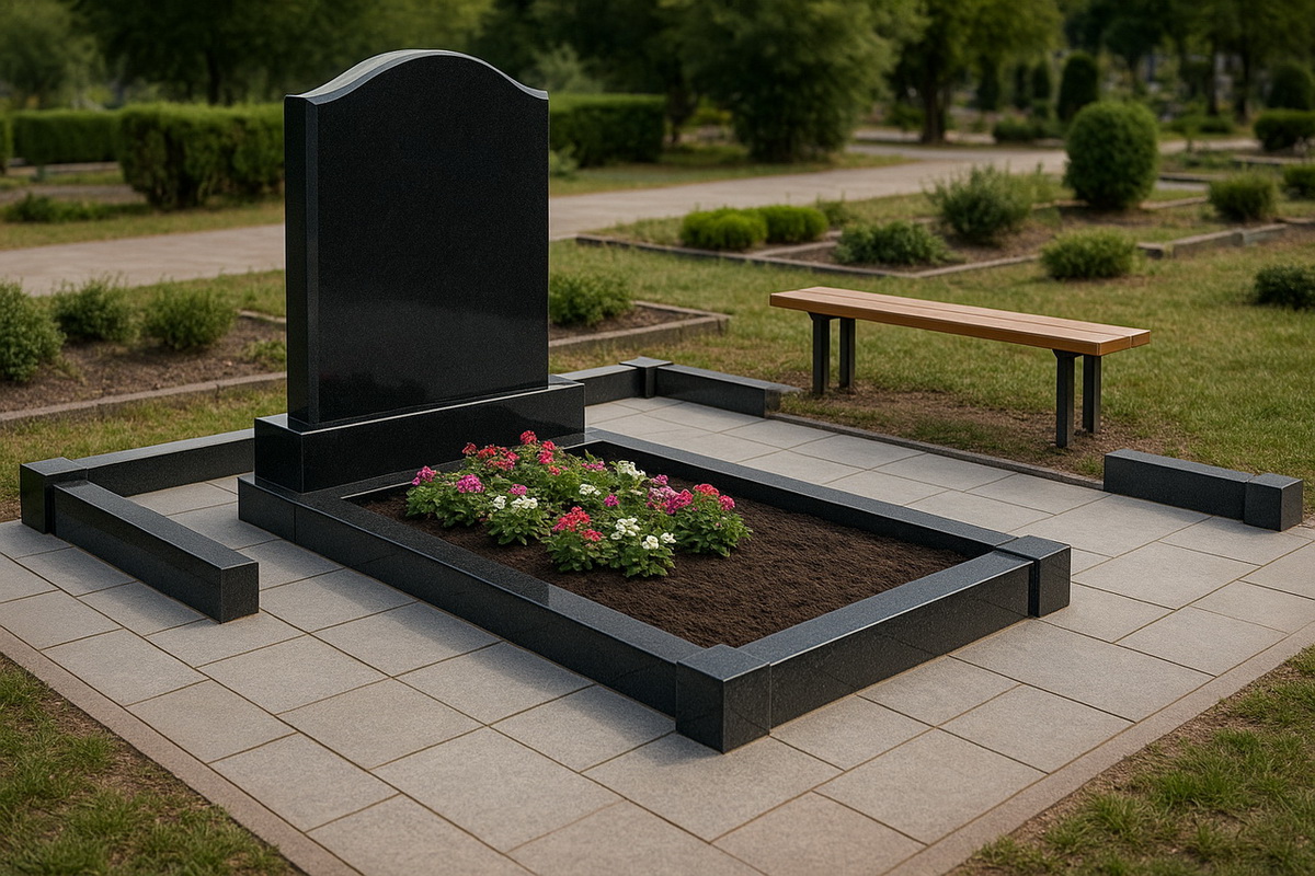 Комплекс создаётся для тех, кто хочет оформить участок целиком. Он объединяет памятник, цветник, цоколь, плитку, иногда — лавочку или декоративные элементы.