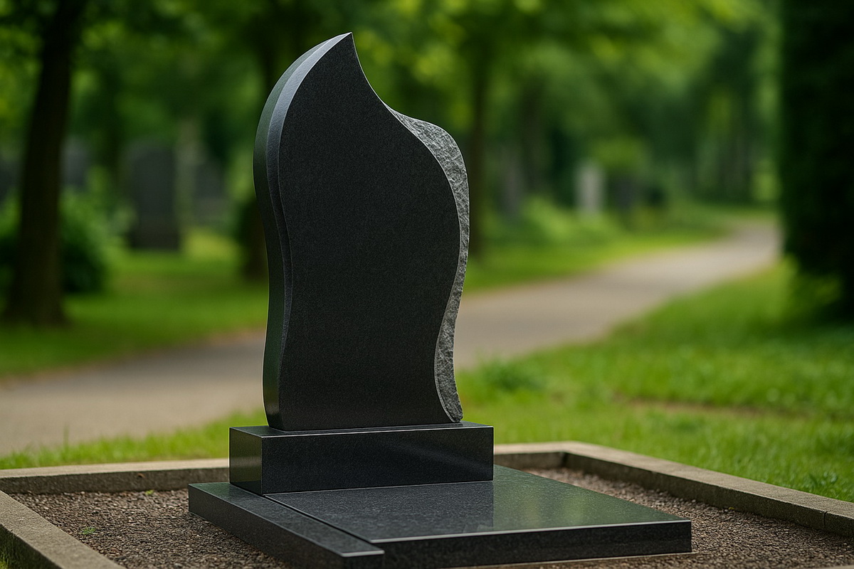 Эта форма не ограничивается строгим прямоугольником. Сегодня мастера предлагают стелы со скруглёнными линиями, асимметрией, плавными волнами, накладными деталями и комбинированной полировкой. Вертикальный памятник хорошо смотрится как одиночно, так и в составе мемориального комплекса.