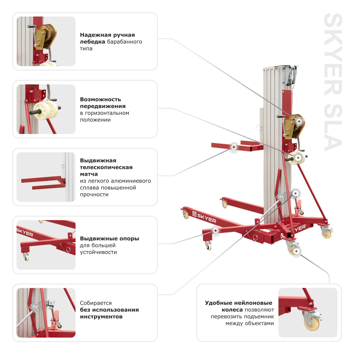 Мачтовые подъемники, как правило, применяются для перемещения грузов в направляющих стойках. Их ключевая особенность — наличие грузонесущей платформы, движущейся по жесткой конструкции. В свою очередь, подъемники для людей (пассажирские или грузопассажирские) проходят еще более строгий контроль, так как в зону риска попадает не только имущество, но и жизнь людей. Конструкция таких устройств обязательно включает в себя: