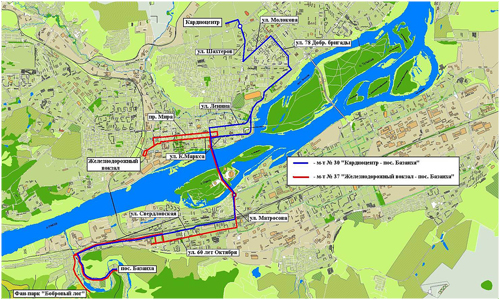 1. Не закрывать и оставить в маршрутной схеме города маршрут № 30 «п. Базаиха – Кардиоцентр», при этом увеличив с 8 до 12 единиц количество автобусов на маршруте № 37 «п. Базаиха – Ж/д вокзал»;