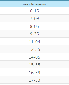 | Первый рейс: 06:15 | Последний рейс: 17:36 |