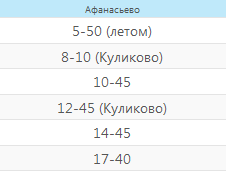 | Интервал движения: по расписанию | Стоимость проезда: от от 26 руб. |
