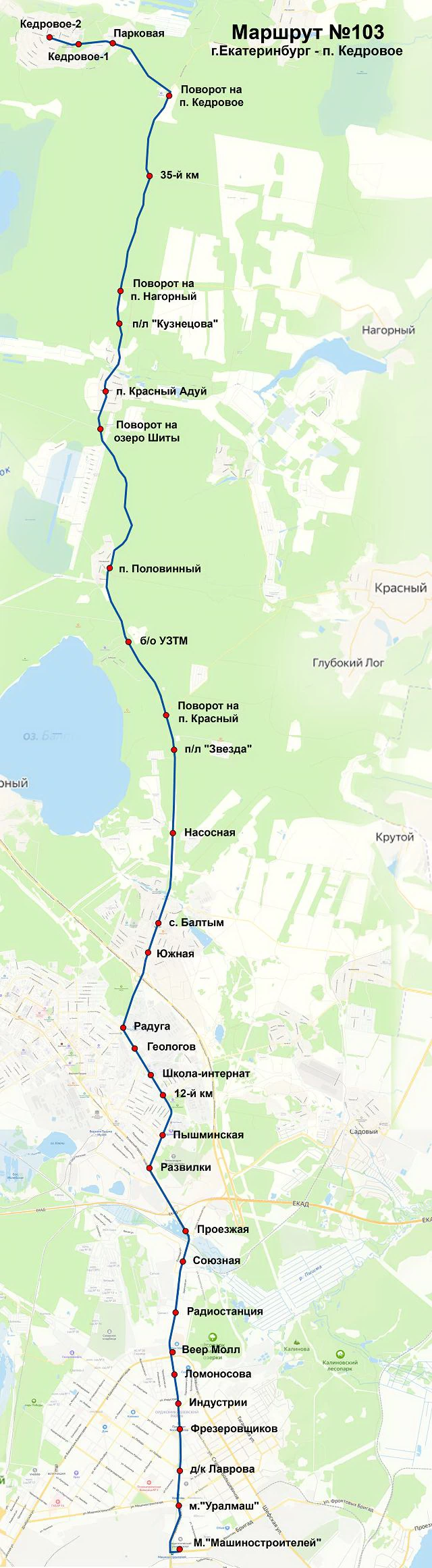 Маршрут пригородного автобуса № 103 в Екатеринбурге