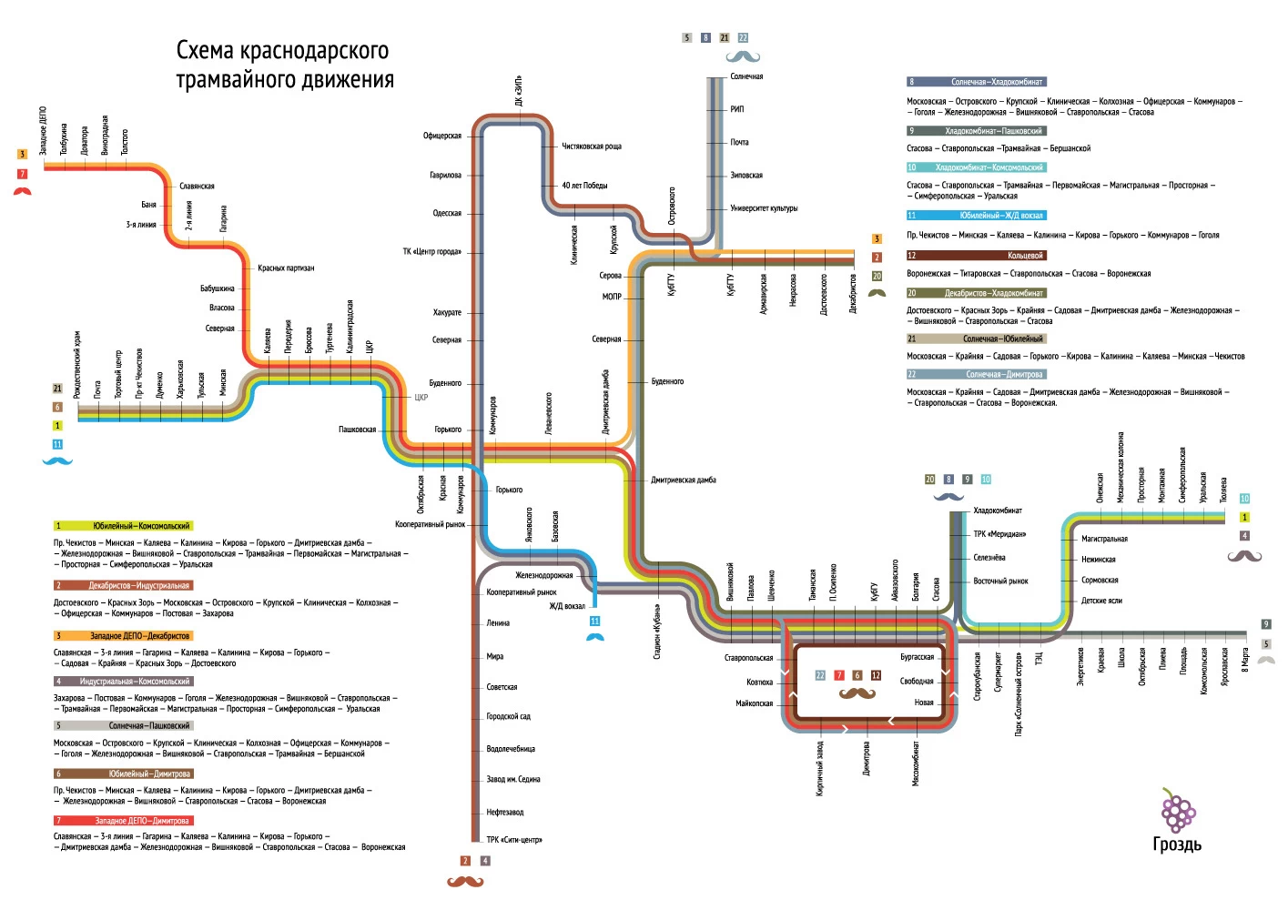 * В списке маршрутов трамваев Краснодара указаны время в пути между конечными остановками и количество отзывов. Кликните на маршрут и узнаете его расписание движения.