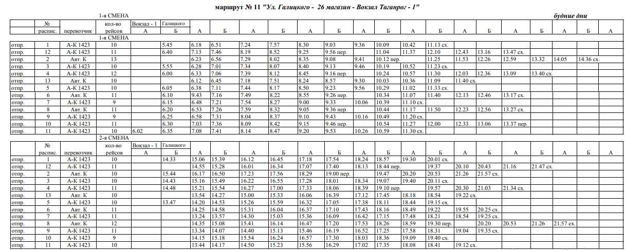 Движение автобуса по маршруту №11 в Таганроге с остановками