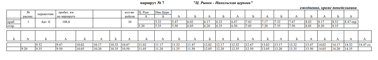 | Первый рейс: 05:20 | Последний рейс: 14:47 |