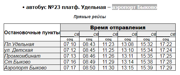 | Первый рейс: 07:10 | Последний рейс: 17:46 |