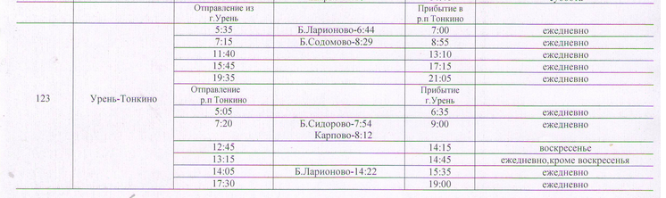 Ⓐ Автовокзал Урень → Ⓐ Тонкино автостанция