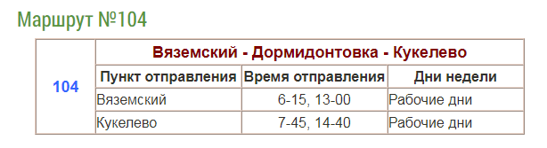 Маршрут пригородного автобуса № 104 в Вяземском